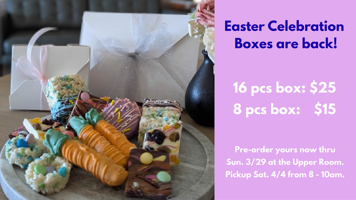 Come experience our heavenly coffee & baked goods at the Upper Room. Our friendly coffee shop staff will be delighted to serve you your coffee or tea just the way you like it. Accompany your drink with your choice of a variety of delicious baked goods that would make Saint Honore proud. The Upper Room is a place of fellowship where you can meet new friends or catch up with old friends. Enjoy your food & drink inside our comfy indoor seating area or outside in our beautiful garden.